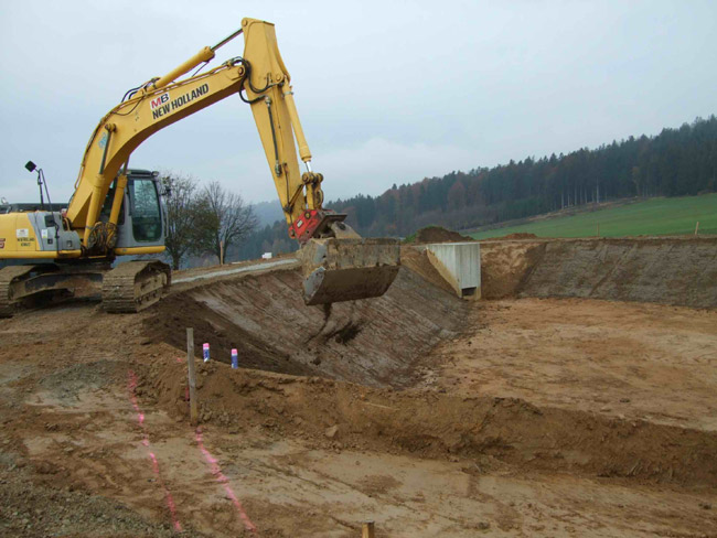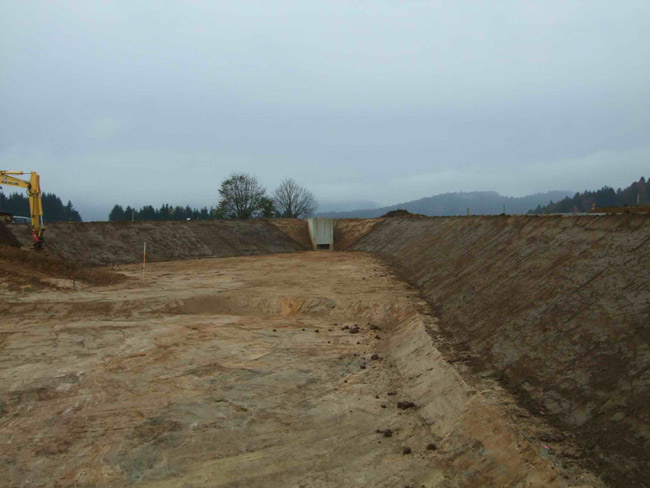 Regenrückhaltebeckens in Erdbauweise mit einem Volumen von 3.300 m³