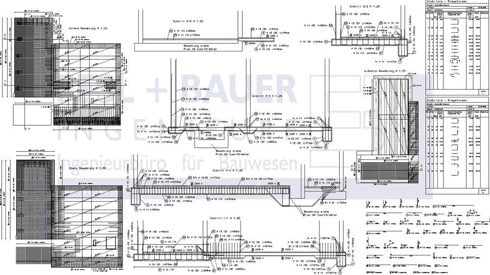 Stahlbauten und Bewehrungspläne für Stahlbetonbauten bei diversen